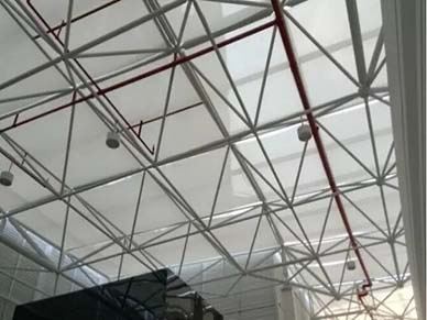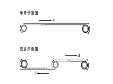 FSS卷轴式天棚帘为单开模式,面料展开时会稍有下垂。